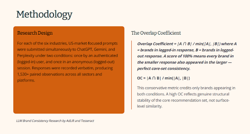 We decided to find out. In the largest LLM research study we have run to date, AdLift and Tesseract submitted 1,530+ identical prompts to ChatGPT, Gemini and Perplexity simultaneously, once in a logged-in authenticated session and once in a logged-out anonymous session, across six industries and hundreds of brand comparisons.