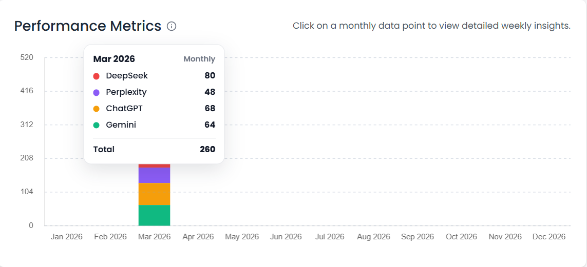 Decision makers need context, not just numbers. Present trends clearly and show how shifts in AI visibility or authority relate to outcomes: